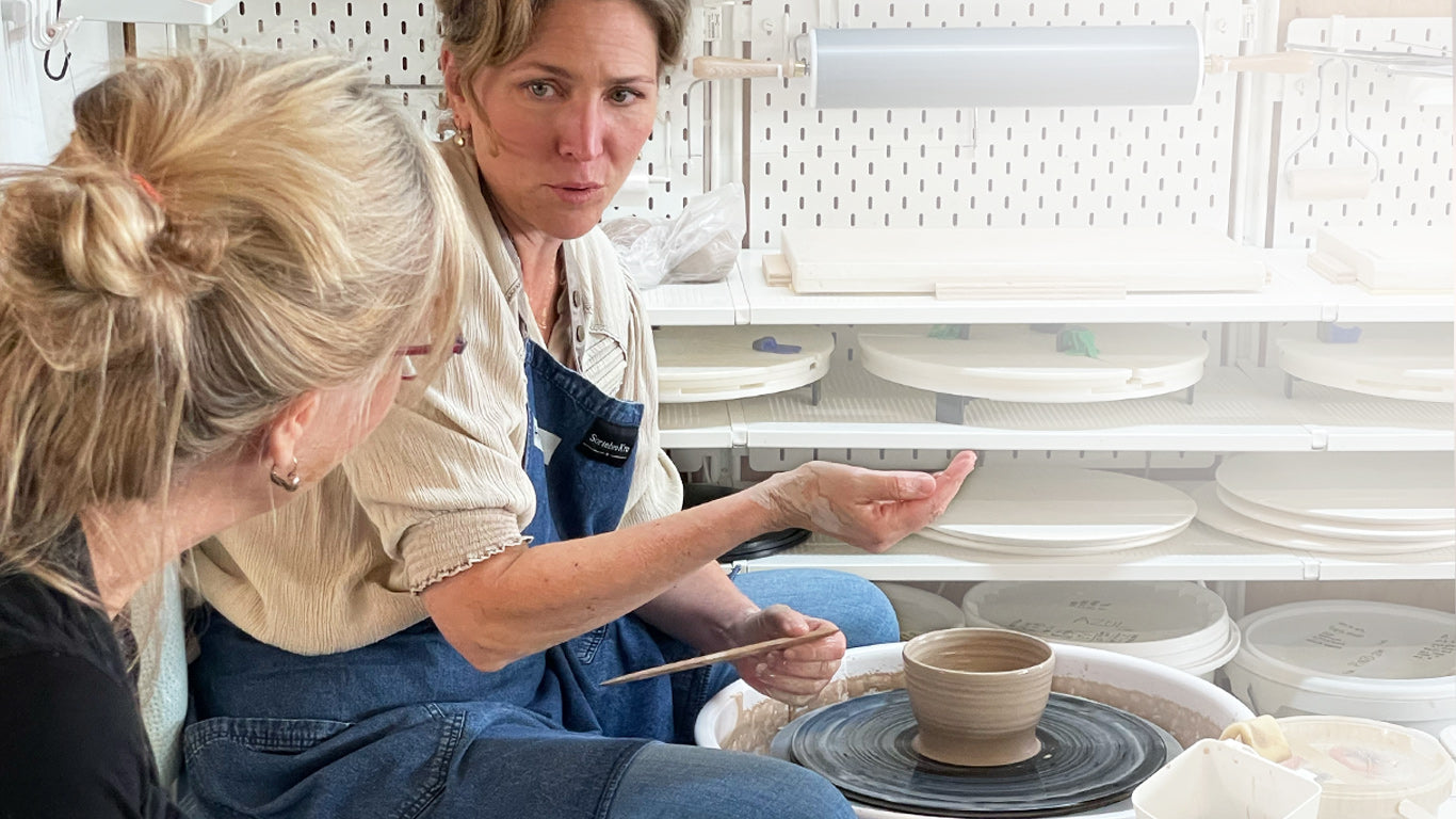 Während der Offenen Werkstatt kannst du deine Stücke gemeinsam mit einer Gruppe glasieren.