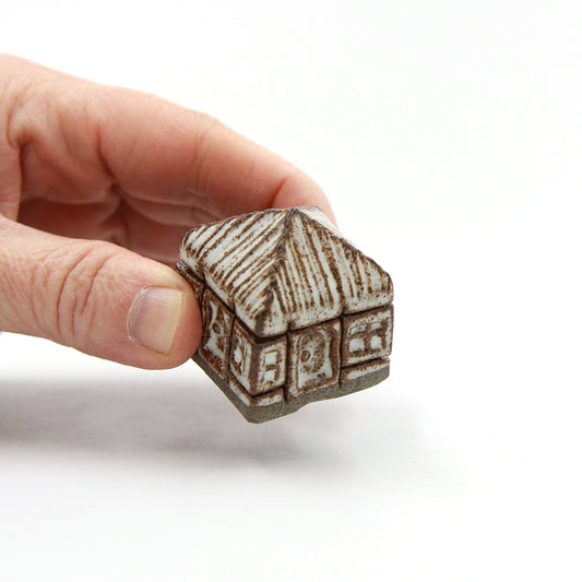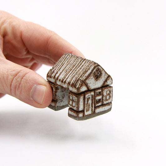 Små keramiske bindingsværkshuse med stråtag, der kan sættes sammen på utallige måder.