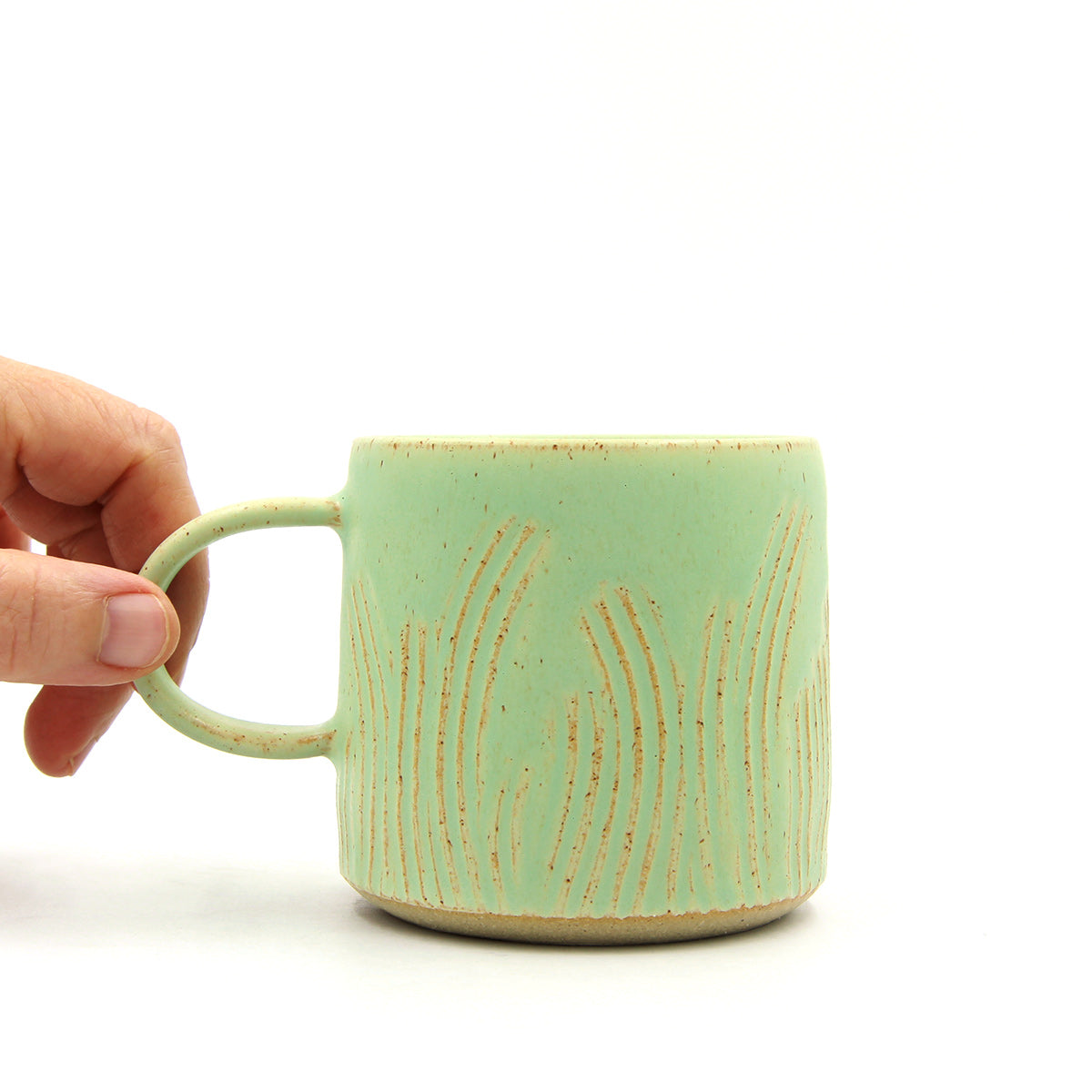 Handgedrehte CAVA-Tasse mit eingravierten Mustern, die sowohl ins Auge fällt als auch gut in der Hand liegt. Der breite, abgerundete Henkel macht das Halten der Tasse besonders angenehm und ist ein tägliches Vergnügen für jeden Tee- oder Kaffeeliebhaber.