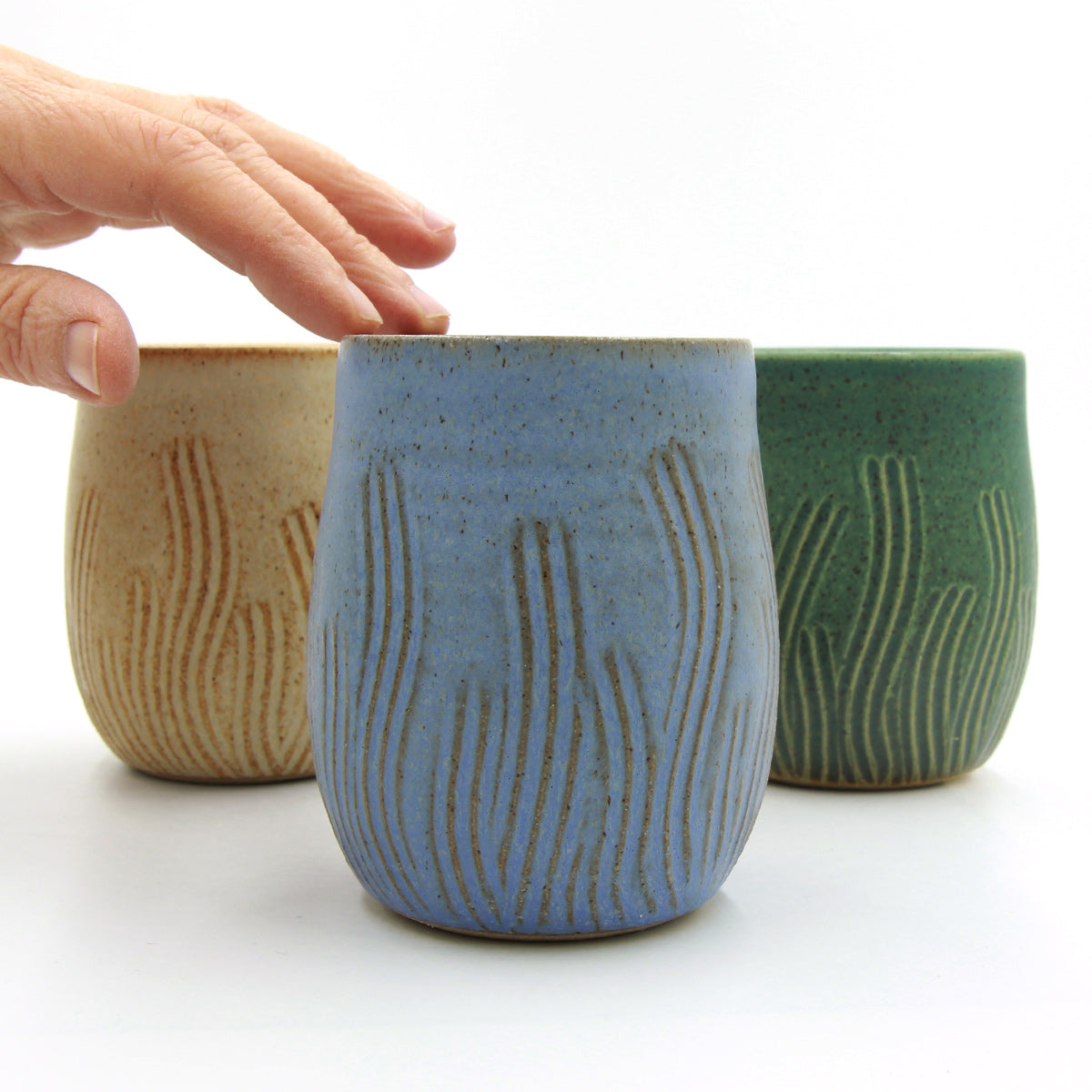 Handgedrehte Tassen mit aufwendig geschnitzten Mustern, die nicht nur schön anzusehen sind, sondern sich auch angenehm in der Hand anfühlen. Perfekt für jeden Tee- oder Kaffeeliebhaber.