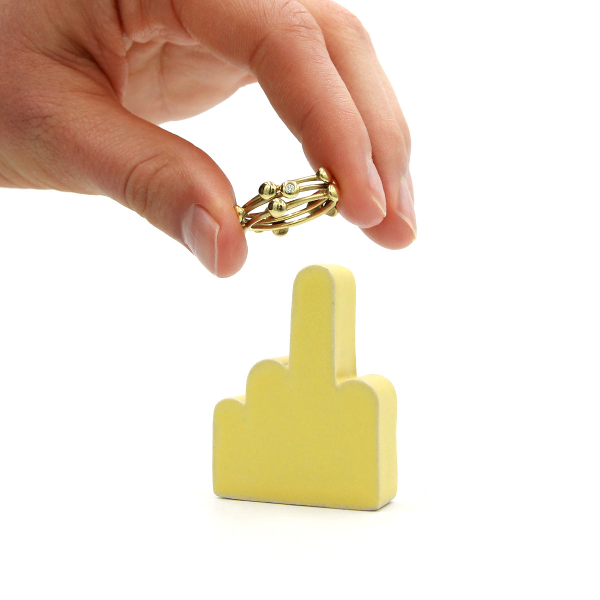 Der Finger, der die Idee ins Rollen brachte. MIDDLE steht für sich allein und zeigt gerade nach oben – ruhig und markant zugleich. Die Form ist schlicht und grafisch und bietet deinen Ringen einen klaren Platz, während sie gleichzeitig einen Hauch von zurückhaltendem Humor verleiht. Lässt sich leicht im Badezimmer, in der Küche und auf dem Nattisch platzieren.