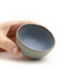 Handgedrehte Steingutbecher mit einem schönen dunklen Rand, der diese Serie auszeichnet.