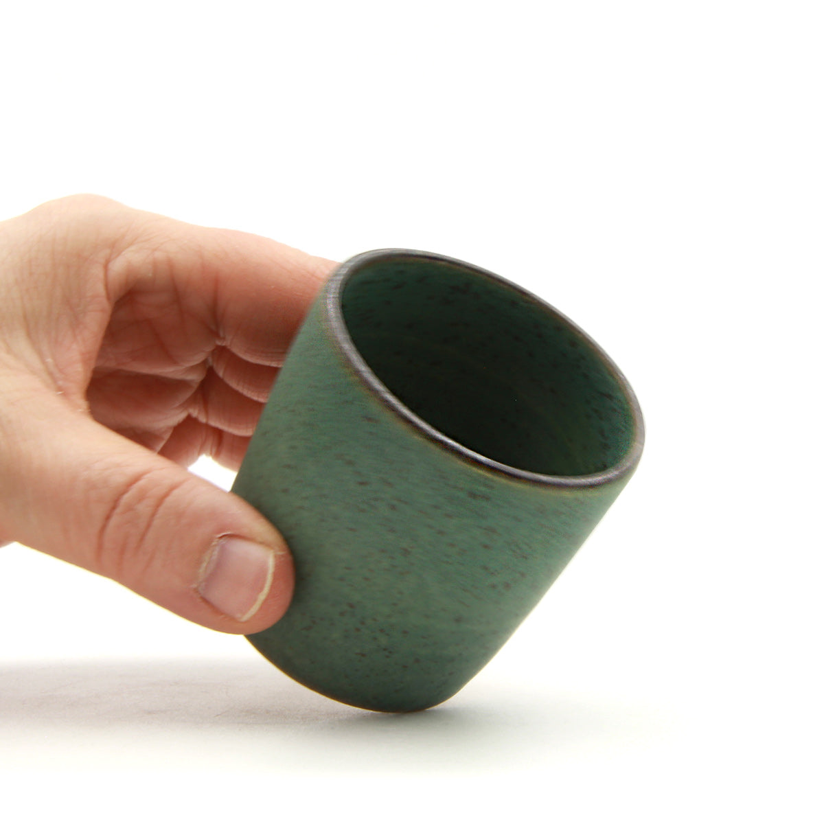 Handgedrehte Steingutbecher mit einem schönen dunklen Rand, der diese Serie auszeichnet.