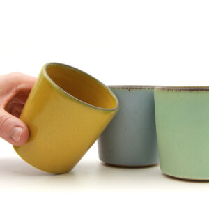 Handgedrehte Steingut-Tasse. Mit einem schönen dunklen Rand verziert, der diese Serie auszeichnet.