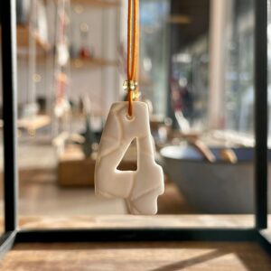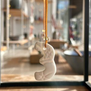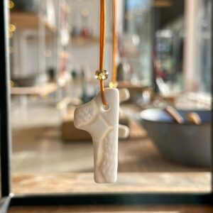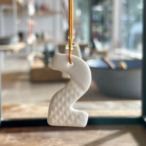 1 • 2 • 3 • 4 Adventszahlen aus weißem Porzellan aus der Serie GrandMa's, auf beiden Seiten mit zarten Spitzenmustern meiner Großmutter geprägt. Jede Zahl ist aus dünnem Porzellan gefertigt, was ihnen einen einzigartigen durchscheinenden Effekt verleiht. Die Nylonschnur ist oben elegant mit einer kleinen Perle zusammengehalten.