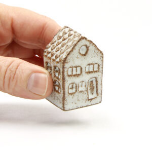 Die Olufshäuser bestehen zu 100 % aus Recycling-Ton, der schonend aus meiner übrigen Produktion wiederverwertet wird. Sie werden in den kleinen Zwischenräumen im Brennofen gebrannt, damit die Ressourcen bestmöglich genutzt werden.