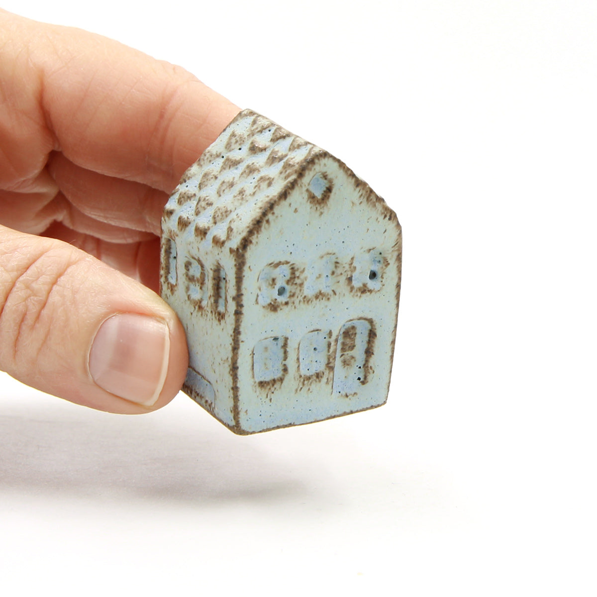 Die Olufshäuser bestehen zu 100 % aus Recycling-Ton, der schonend aus meiner übrigen Produktion wiederverwertet wird. Sie werden in den kleinen Zwischenräumen im Brennofen gebrannt, damit die Ressourcen bestmöglich genutzt werden.