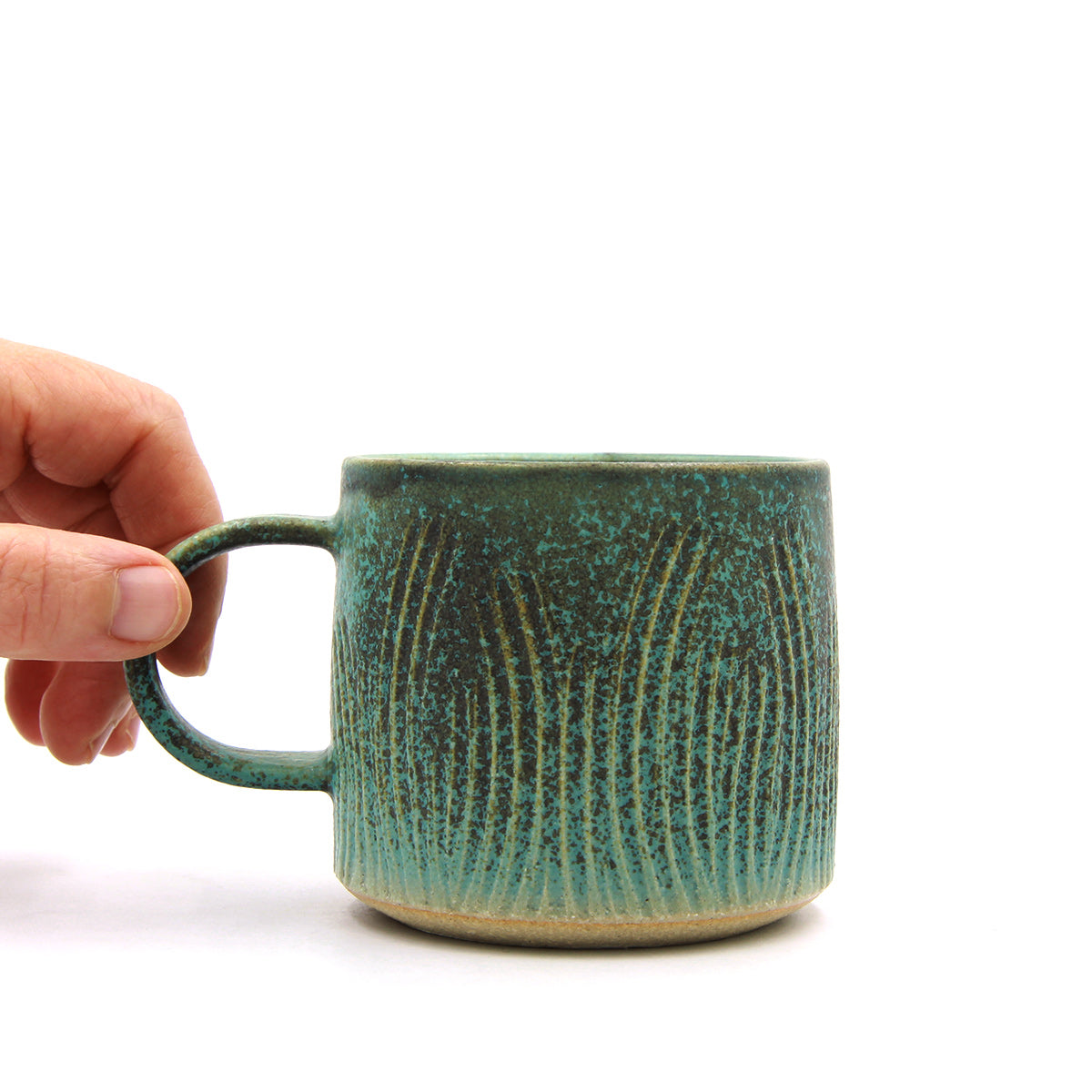 Handgedrehte Becher mit detaillierten geschnitzten Mustern, die sie nicht nur schön anzusehen, sondern auch angenehm zu halten machen. Perfekt für jeden Tee- oder Kaffeeliebhaber.