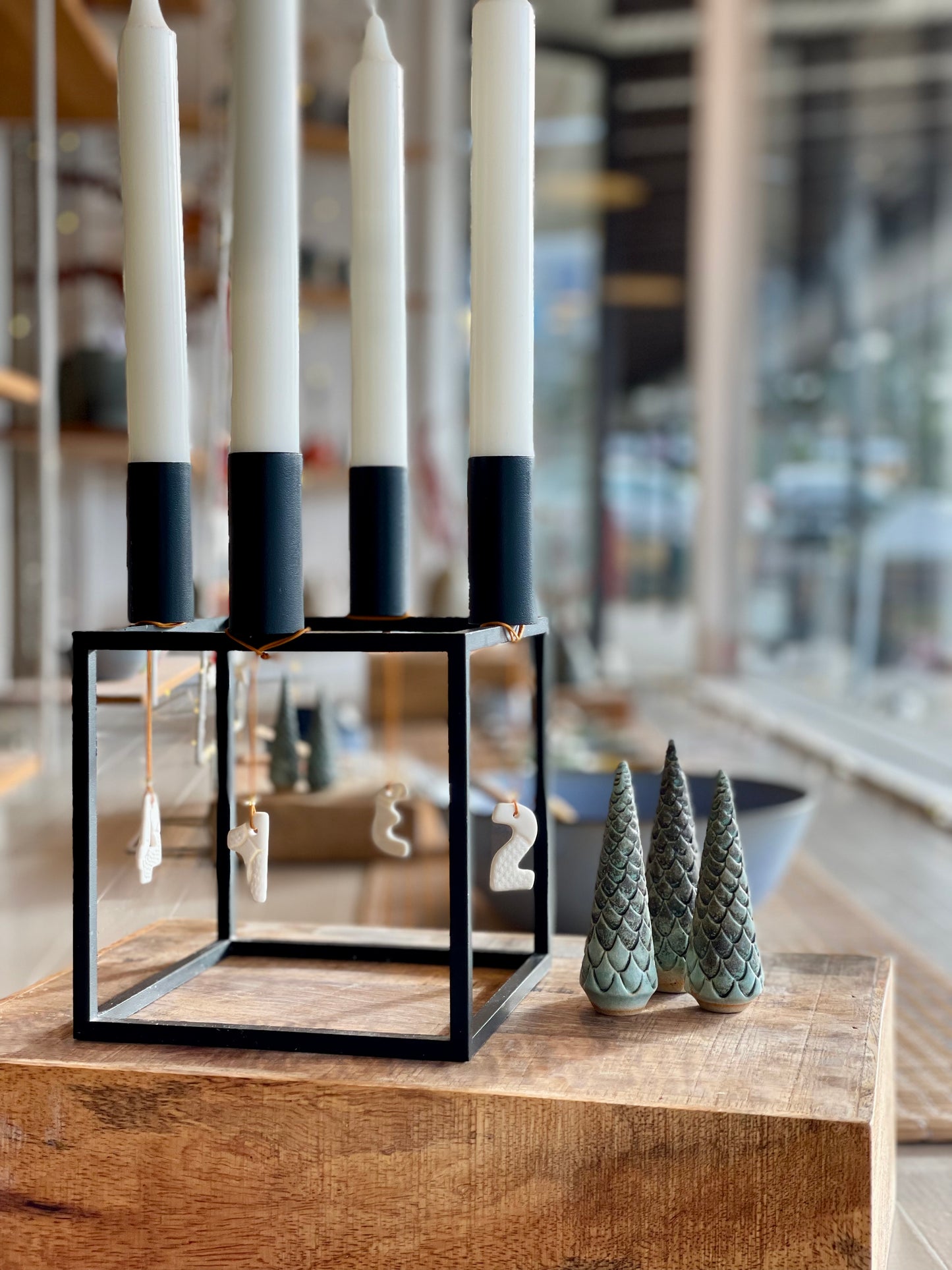 1 • 2 • 3 • 4 Adventszahlen aus weißem Porzellan aus der GrandMa's Serie, geprägt mit den zarten Spitzen meiner Großmutter auf beiden Seiten. Jede Zahl ist aus dünnem Porzellanmaterial gefertigt, was ihnen einen einzigartigen transluziden Effekt verleiht. Das Nylonband ist elegant an der Oberseite mit einer kleinen Perle zusammengefasst.